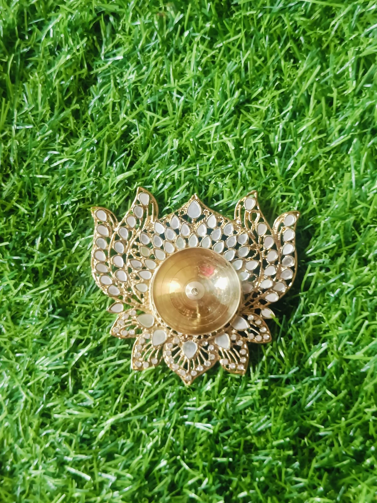 Metal Stone Flower Diya – 1pc